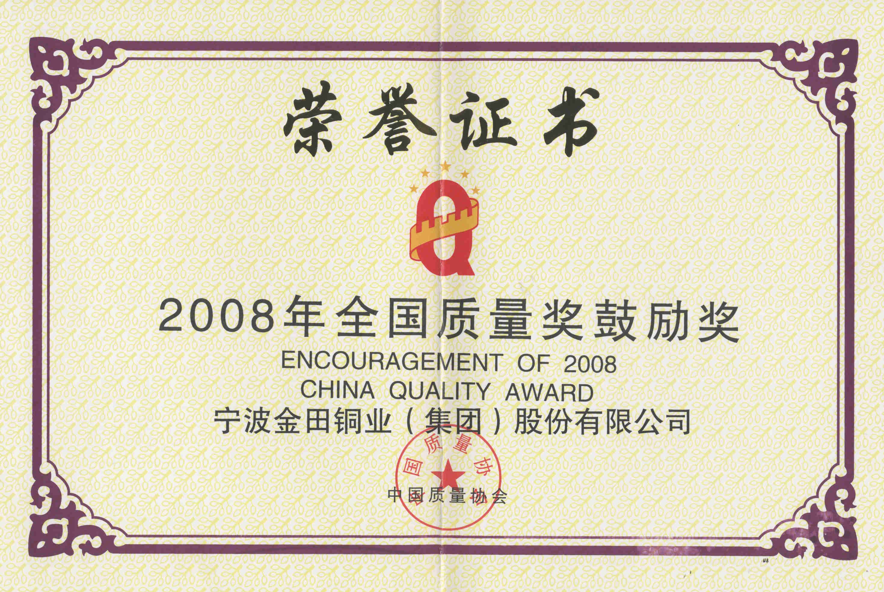 公司自2005年导入卓越绩效管理模式以来持续深化卓越管理,荣获宁波市首届市长质量奖荣誉、浙江省质量奖和全国质量奖鼓励奖、全国卓越绩效模式实施先进单位。下属子公司宁波金田铜管有限公司荣获2015年度宁波市出口质量奖。