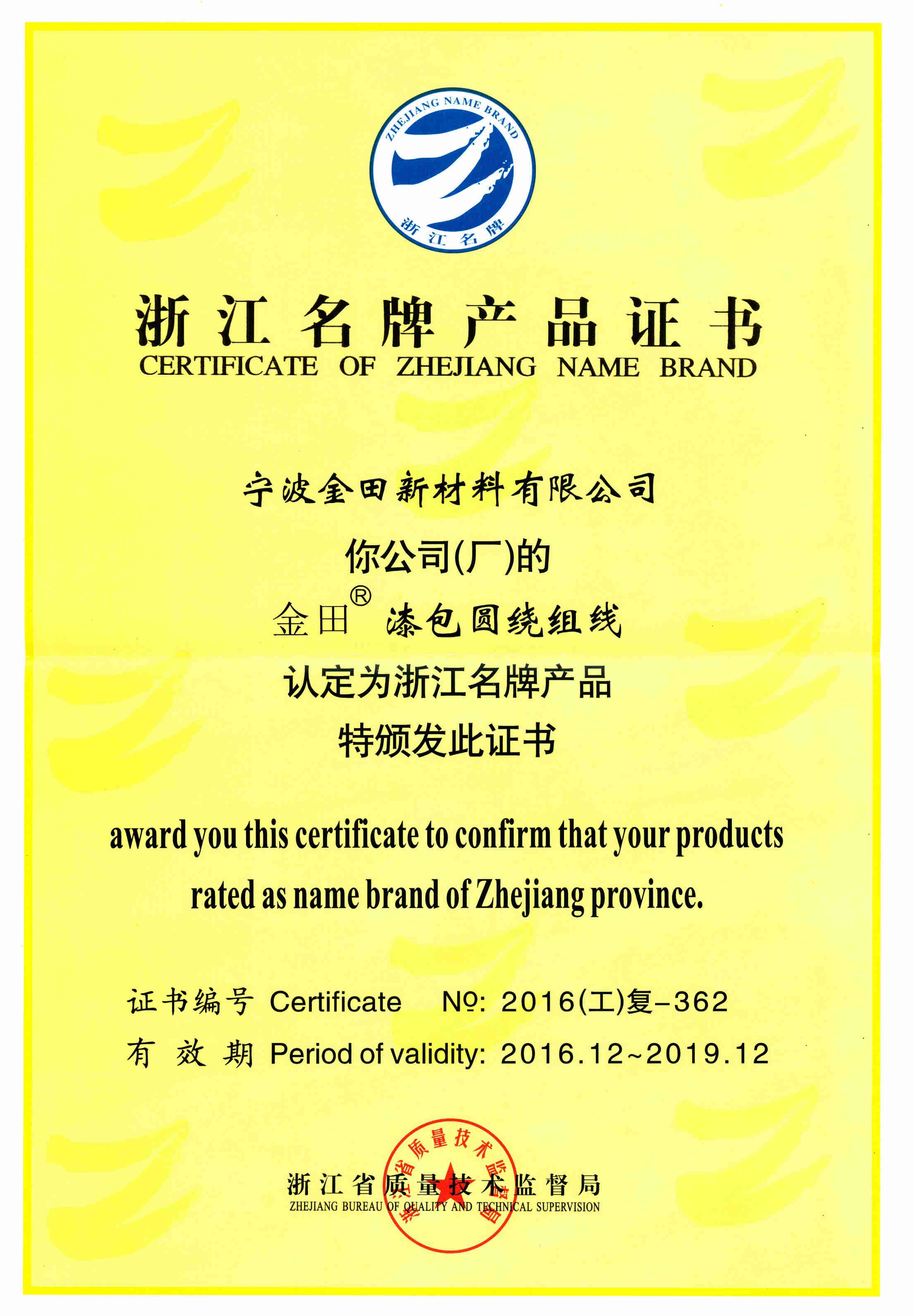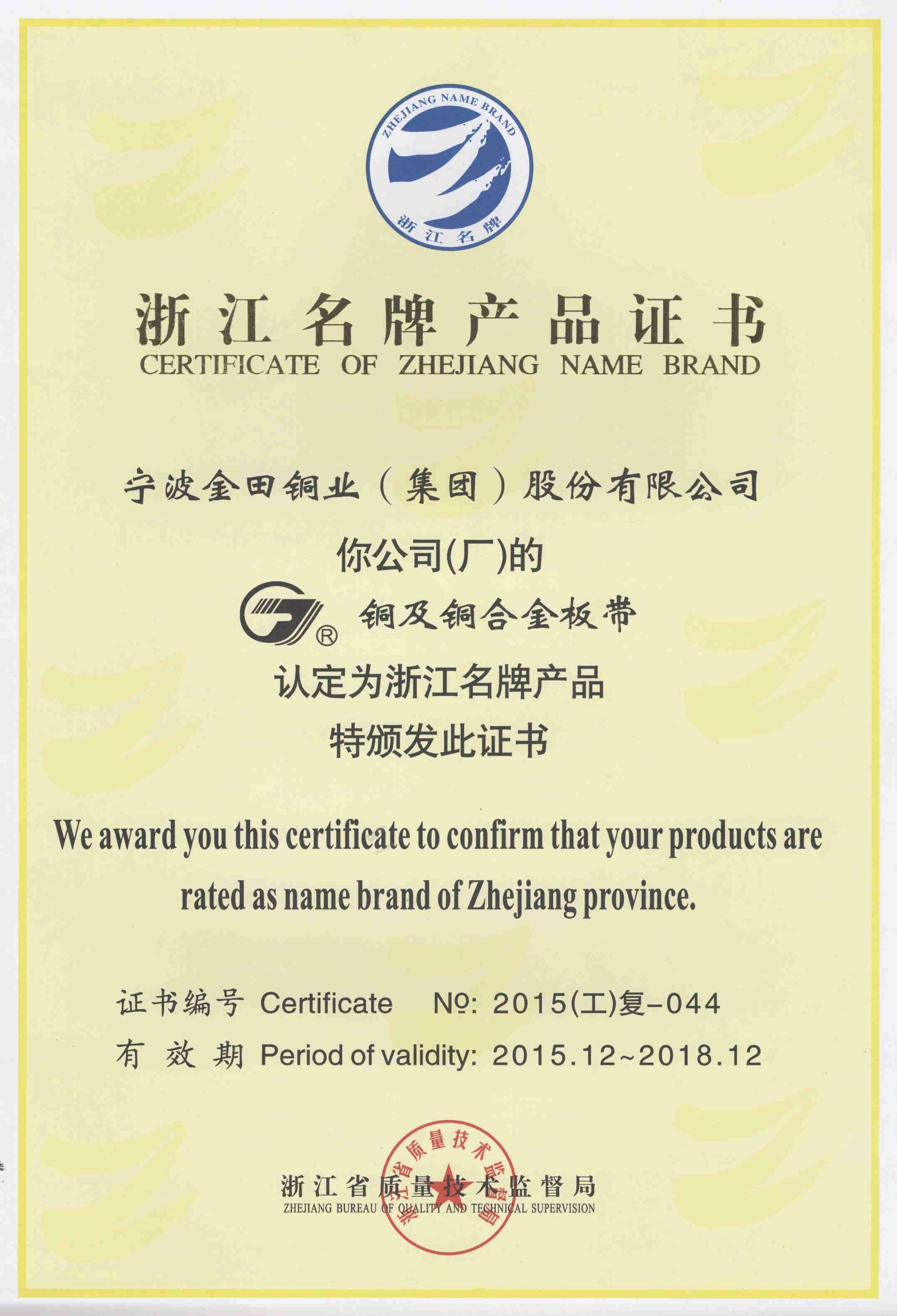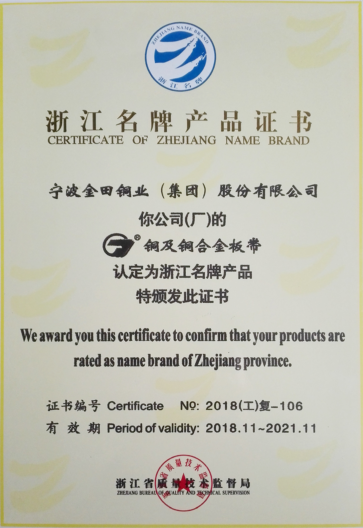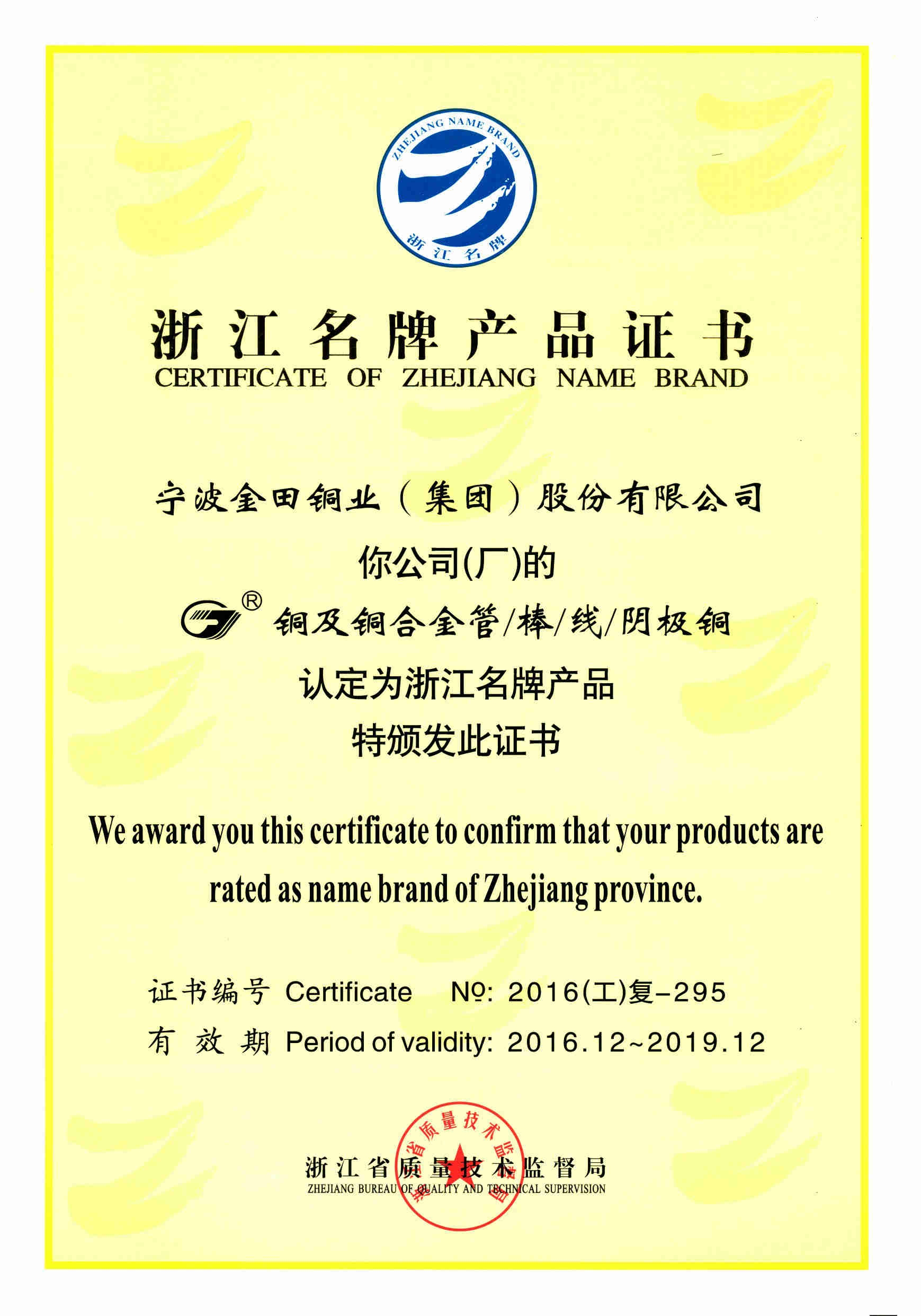 公司主导产品金田牌铜及铜合金管、棒、线、板、带、阴极铜,金田牌漆包圆铜线,科磁牌钕铁硼等产品均获得浙江名牌产品称号,杰克龙牌阀门及管件荣获宁波名牌产品称号。
